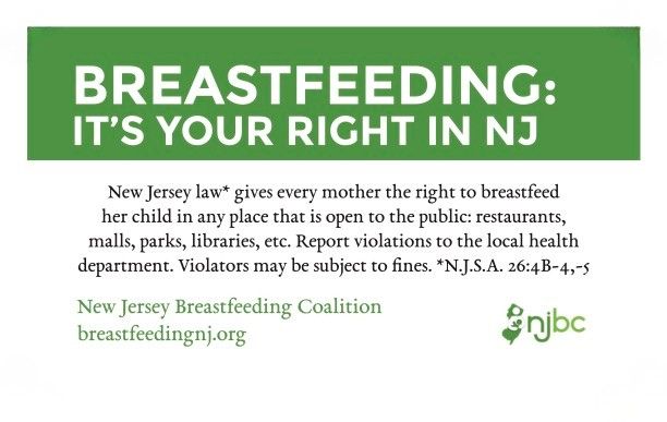Download this card from the New Jersey Breastfeeding Coalition to carry with you in case your public breastfeeding rights are violated: